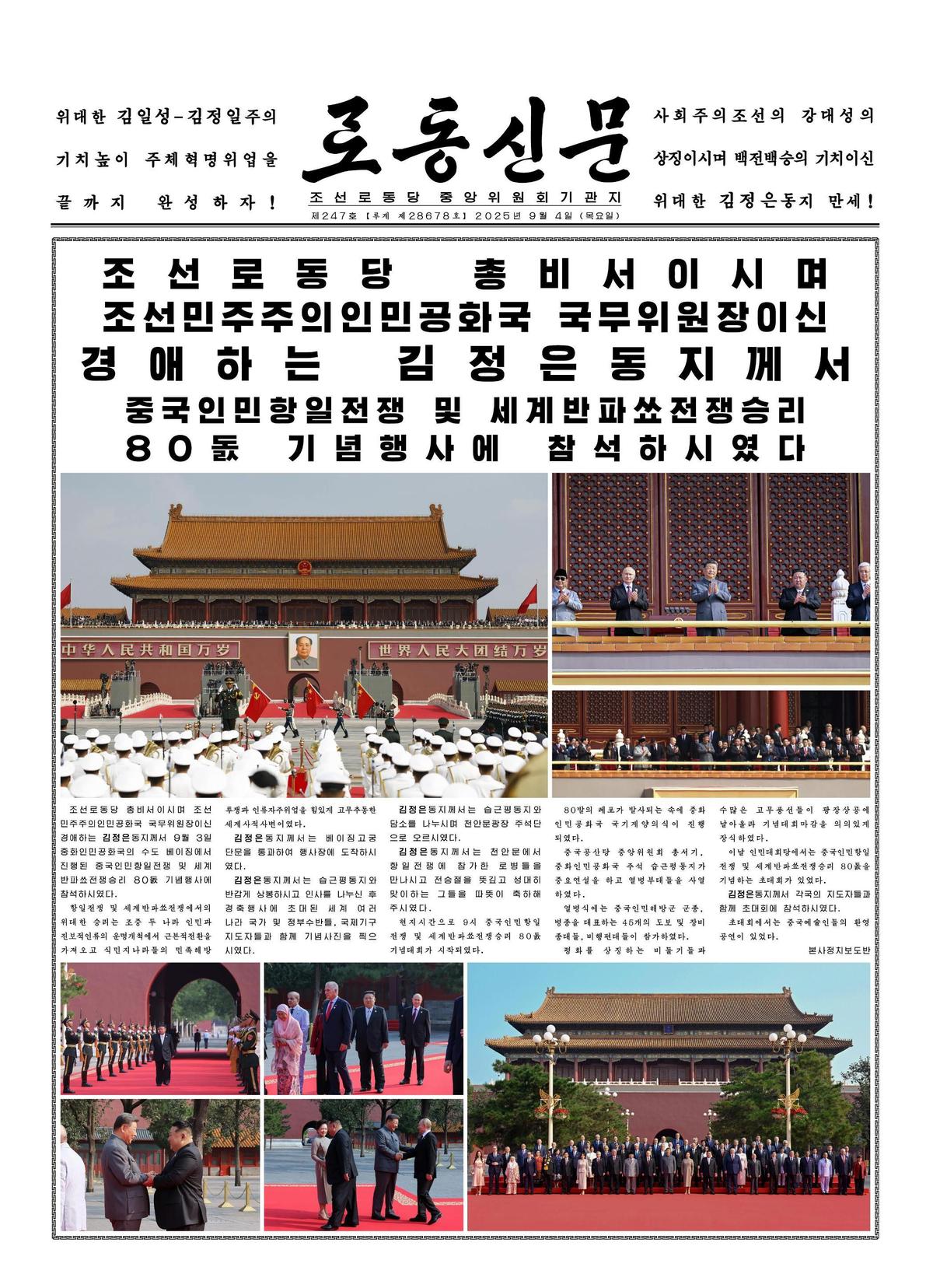 <사진 1>2025년 9월 4일자 북한 노동신문 1면. 뉴스1