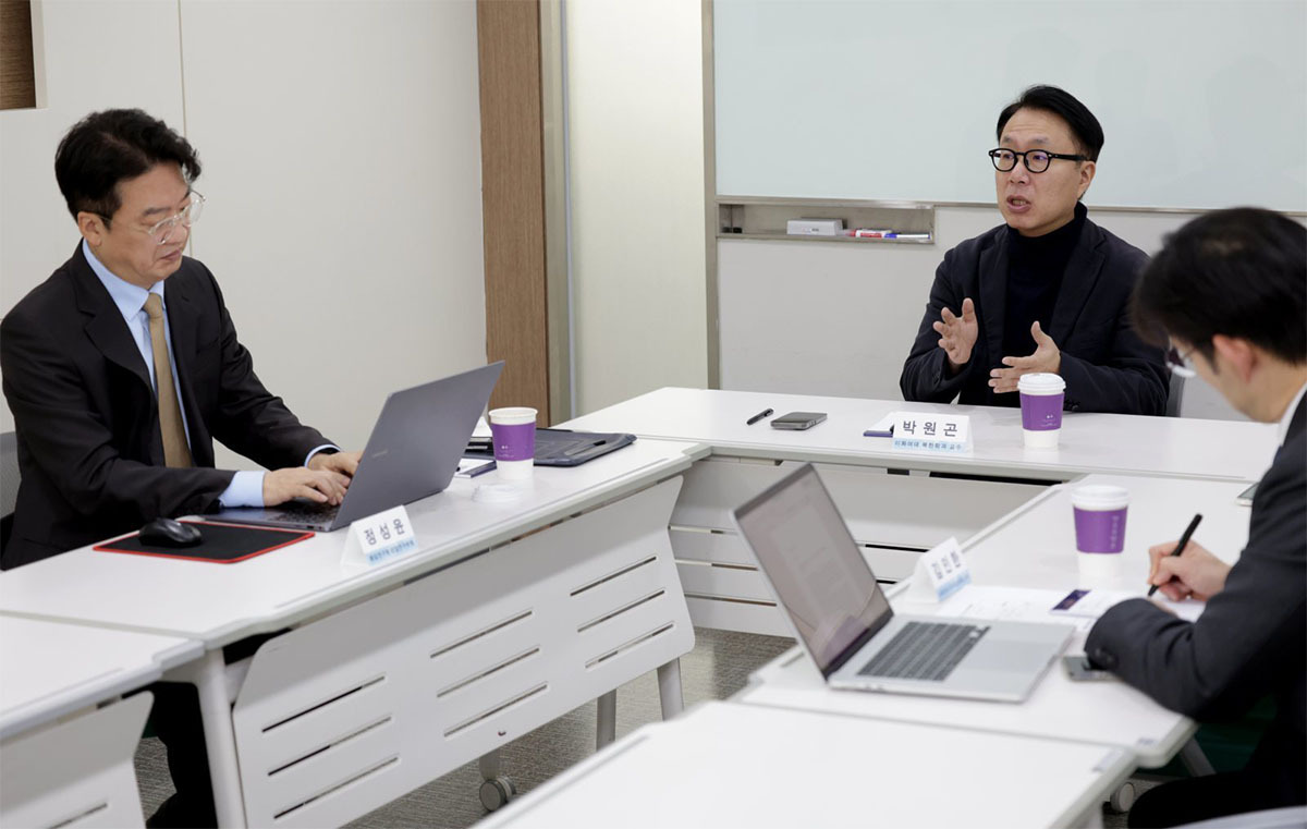 화정평화재단은 12월 4일 동아닷컴 대회의실에서 급변했던 2025년 점검하고 다가 올 2026년 한반도와 동북아 외교 안보 환경을 전망하는 간담회를 가졌다. 정성윤 통일연구원 선임연구위원, 박원곤 이화여대 북한학과 교수, 김인한 이화여대 정치외교학과 교수가 토론하고 있다. 변영욱 기자 cut@donga.com